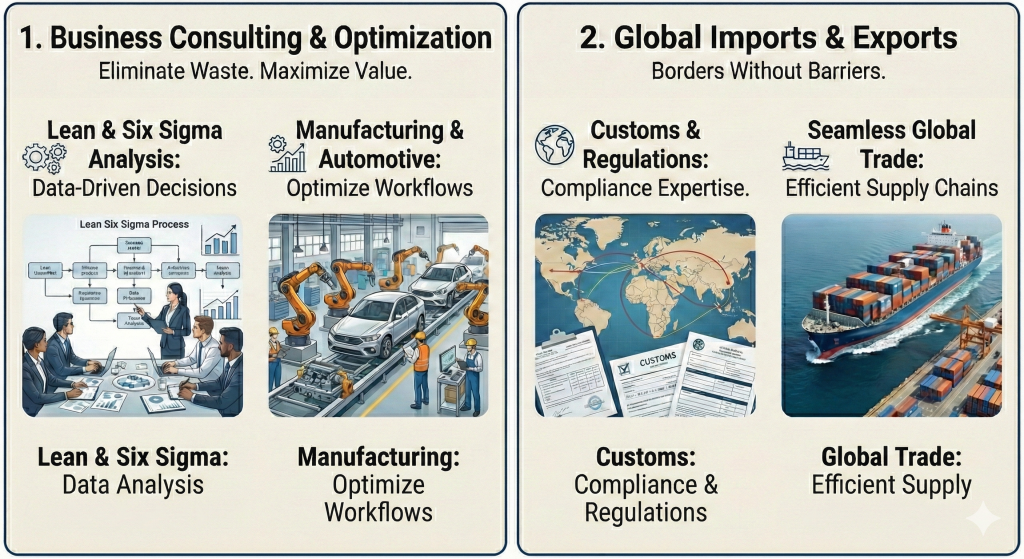 “Eliminate Waste. Maximize Value.” We don’t guess; we measure. Using Lean and Six Sigma principles, we analyze your production lines and operational workflows to identify bottlenecks. Our strategies are designed to reduce costs and improve quality systems in manufacturing and automotive sectors.