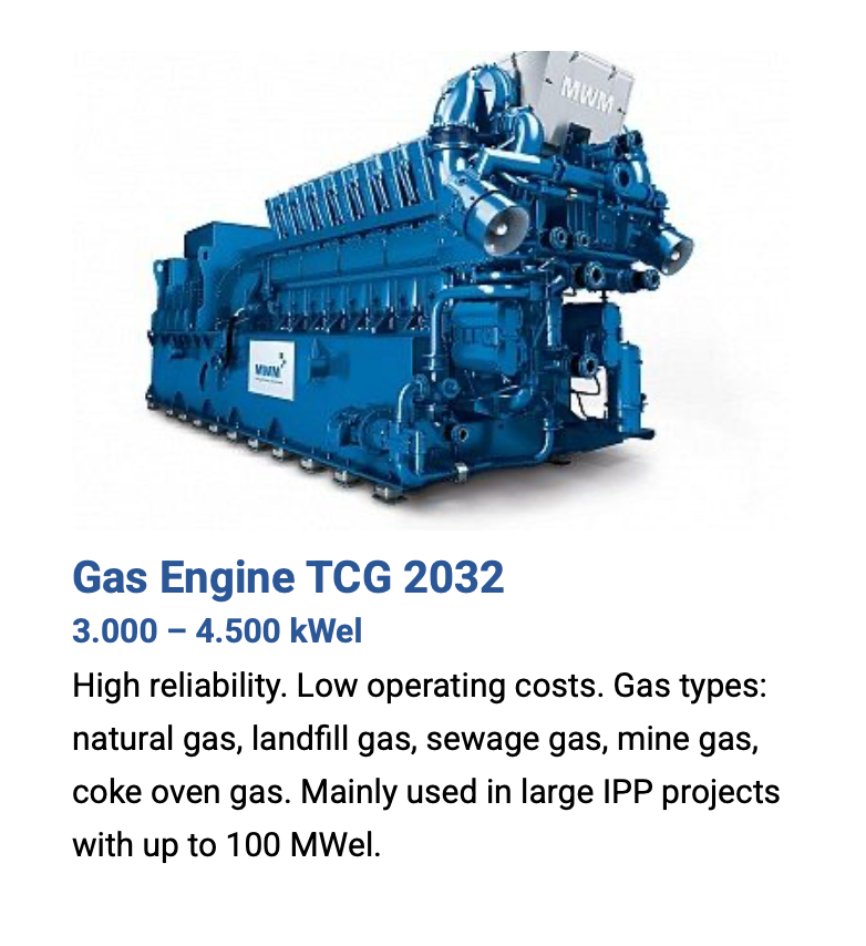MWM’s product portfolio comprises gas engines and gensets in the output range from 400 kWel to 10,300 kWel. In this way, it is possible to set up power plants with an output of up to 100,000 kWel and more.