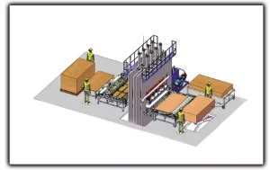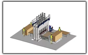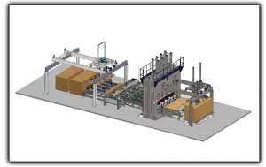 Model A is the basic starting model for short cycle press line, besides press units, it has additional auto board loading machine and manual trimming station.