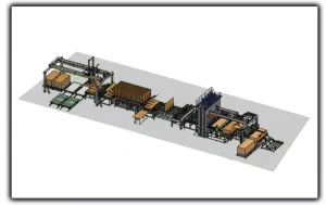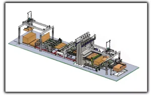 Mode C has the extra clean unit for raw boards based on model B,it has additional Board Laying Machine、Trimming machine、board turnover machine and moving stacking machine.